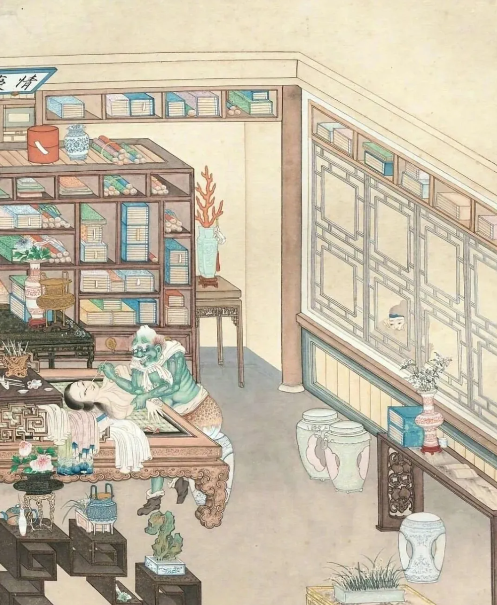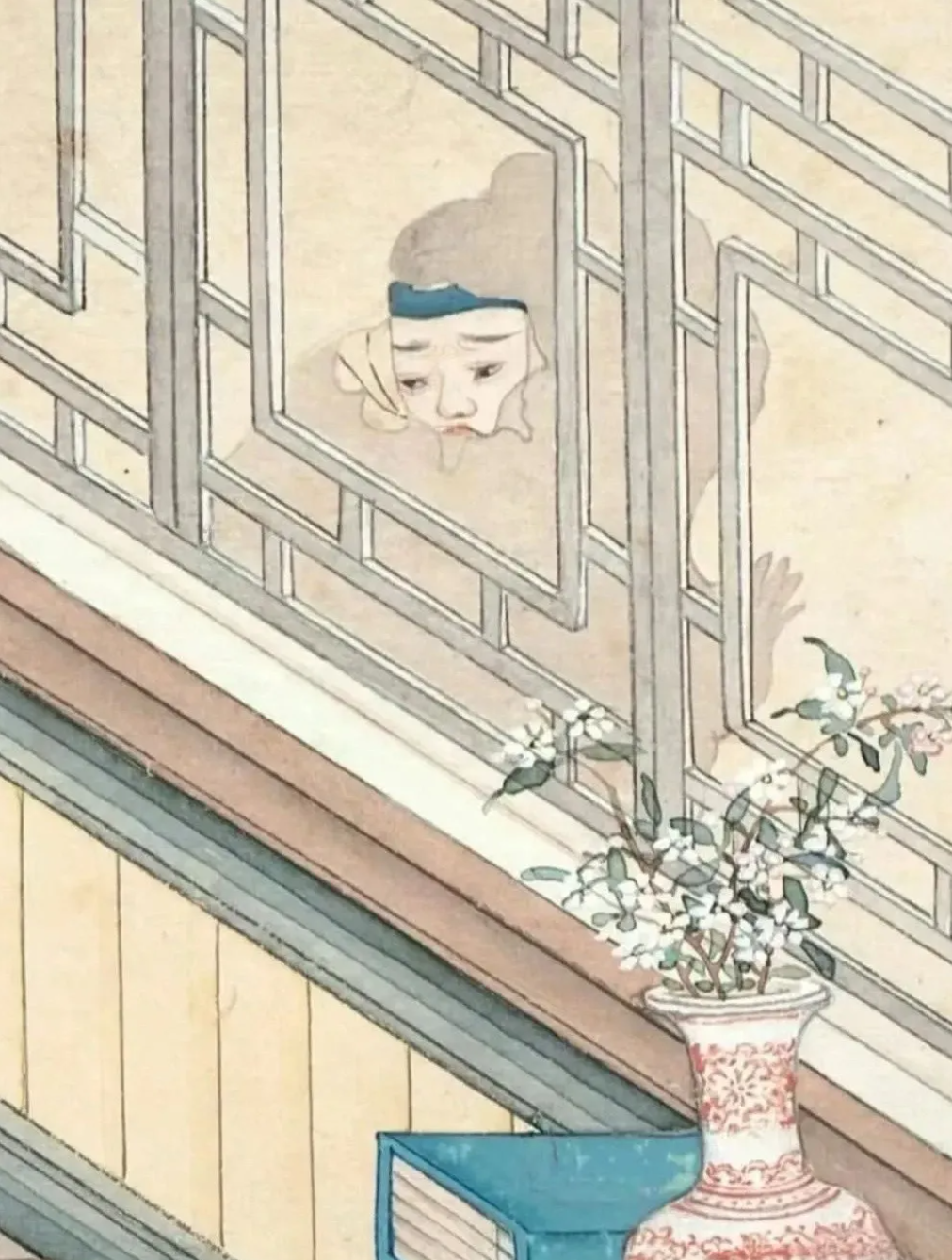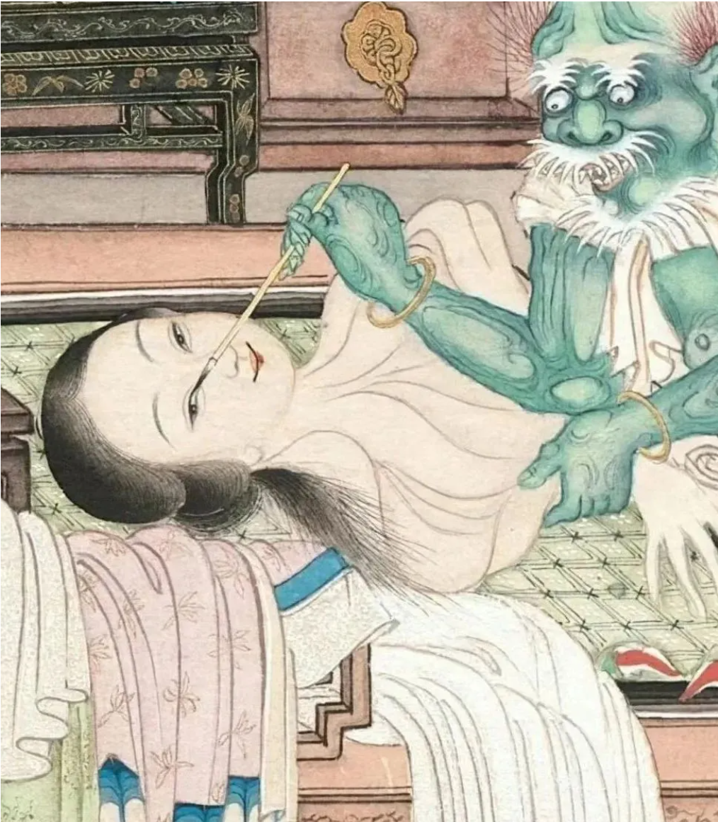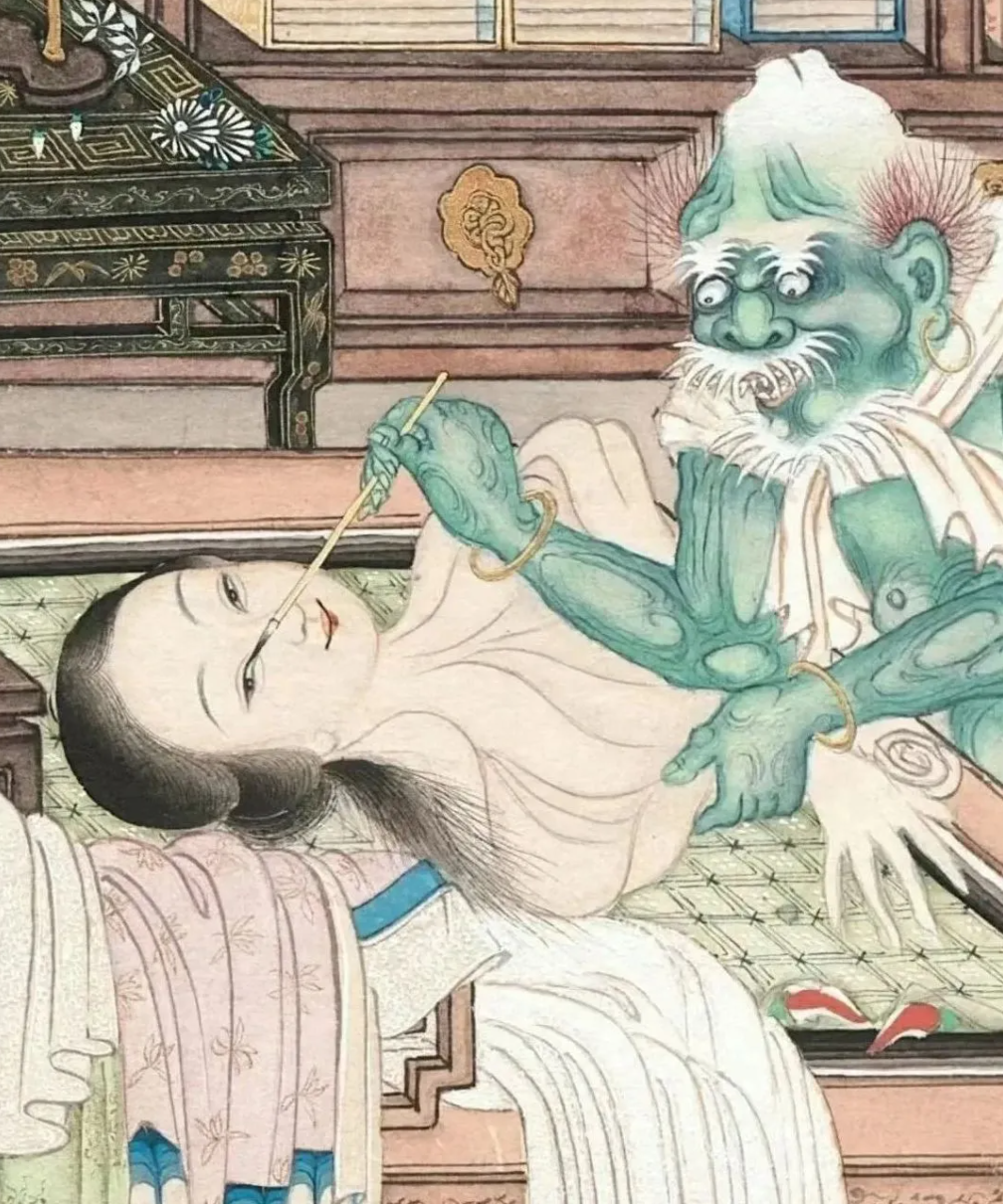 清朝无名画师创作的《窥窗见鬼图》,又名《聊斋女鬼图》,以《聊斋志异·画皮》为蓝本,将文字中的诡异场景转化为视觉冲击,堪称晚清绘画中“志怪美学”的巅峰之作。这幅藏于中国国家博物馆的画作,通过中西技法融合与叙事性构图,将人与鬼的博弈、表象与本质的冲突,凝缩于一方画纸之上。